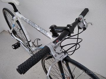 Bici FRW strada taglia M per altezze fino a 175 cm manubrio ibrida Ritchey 9x3 velocità tutta Shimano, telaio alluminio 7005 e forcella in carbonio, cerchi Mavic e copertoni Vittoria, sellino Selle Italia perfettamente funzionante e leggera, bellissima. Non trattabile.