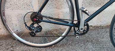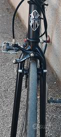 Vendo bici in acciaio misura 54 perfettamente funzionante e pronta per essere utilizzata. Coppia di cerchi in alluminio da 28 con sgancio rapido XLC e copertoni Michelin Dynamic Sport 700x25. Cambio posteriore Shimano Tourney a 6 velocità con manettino al manubrio. Freni anteriori, posteriori e leve Radius con pattini ancora nuovi. Consegna a mano su Bologna e provincia. Prezzo trattabile.