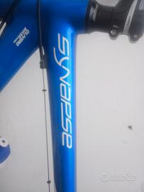 Vendo bici cannondale synapsi in carbonio con 650km cambio Shimano Ultegra con tripletta a 400 euro,gomme perfette tenuta sempre in box pronta all'uso.