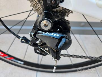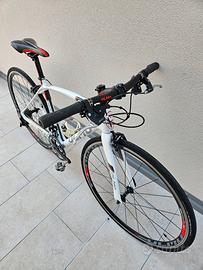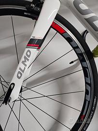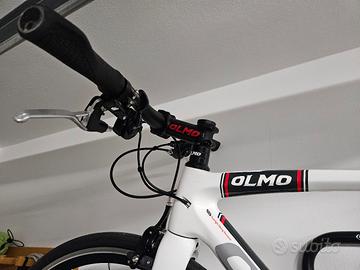 Bici da corsa in Carbonio di marca Olmo e taglia S. Gruppo cambio Campagnolo 105 Componentistica, ruote, sella, reggisella e freni originali Olmo Particolare manubrio Flat (tipo MTB) che la rende adatta a vari utilizzi e anche ai principianti. in perfetto stato e usata pochissimo