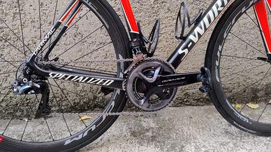 s-works tarmac sl5 interamente in carbonio, montata con tutto il gruppo dura ace elettronico ruote fulcrum con profilo da 40 molto scorrevoli e leggere.