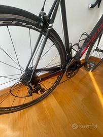 Vendo bici da corsa full carbon SPECIALIZED modello TARMAC Sport tg. 58 (L). La bici monta gruppo meccanico Shimano 105, guarnitura FSA 52x34, ruote in alluminio Fulcrum Quattro, leve Shimano 105, manubrio, attacco e reggisela di serie Specialized. Completa di pedali Look e doppio portaborraccia. Sella Selle Italia modello Superflow. Unico proprietario, telaio e copertoni Vittoria in ottime condizioni. Mai nessun incidente. Bicicletta pronta da usare. La consiglierei a chi si approccia al mondo della bici da corsa per la prima volta con un investimento iniziale contenuto e facilmente recuperabile in caso di rivendita. Consegna di persona a mano a Padova.