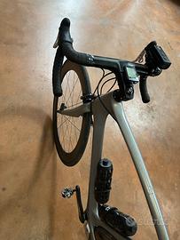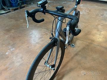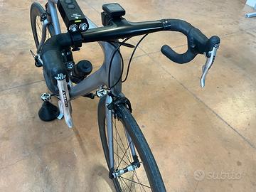 Bicicletta mod. Kuota per altezza 1.75/1.85, completamente in carbonio, la bici è stata riverniciata e rimessa completamente a nuovo di tutto, nella foto ci sono ancora i copertoni vecchi, ma sono stati messi nuovi un mese fa e mai usata per problemi alla colonna vertebrale. Il prezzo è leggermente trattabile