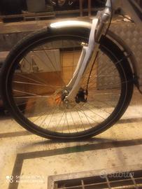 Bici italwin ruote da 28 doppio freno a disco, forcella anteriore ammortizzata, usata pochissimo, predisposizione motore elettrico vendo € 130 solo telefono no messaggi. Tel. 3476634182