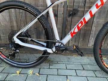 Bici in pronta consegna BICI KELLYS HACKER 30, in taglia M, montaggio come da catalogo: telaio in carbonio, forcella Rockshox RECON 100mm con blocco dal manubrio, trasmissione Sram NX 12 velocità.
