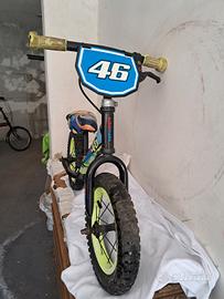 Bici della kiddimoto di Valentino Rossi, senza pedali e con manopole nuove sostituite. Ottima per bimbi da 2 anni in su per imparare a trovare l'equilibrio facilmente e poter imparare prima a portare la bici con i pedali. Presente qc punto di ruggine ma perfettamente funzionante.