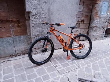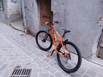 vendo a malincuore bici KTM da 27.5 pollici tenuta e trattata sempre maniacalmente la bici monta un manubrio da 800 attacco manubrio corto in ergal manopole odi pedali con viti antiscivolo morsetto reggisella in ergal cnc sella corta impianto frenante nuovo Z-RACE Disco anteriore 180mm disco posteriore 160mm cambio Shimano a 9 rapporti posteriori e 3 rapporti anteriori anelli manubrio in carbonio la bici è perfetta sarebbero solo da revisionare le forcelle e registrare i cambi prezzo trattabile e ritiro a mano