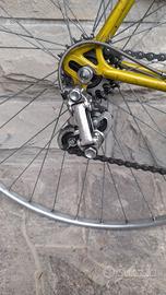 Vendo bici Legnano. Misure centro centro orizzontale 55 verticale 54 pipa 10. Vernice rovinata ma senza ruggine. Utilizzabile da subito . Tubolari presenti solo da incollare su cerchi. Possibilita di avere cambio Campagnolo nuovo record aggiungendo 30 euro.