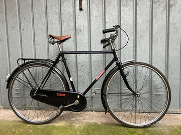 Un vero classico della produzione italiana, elegante e robusta, con cambio interno Sturmey Archer 3-Speed Made in England, funzionante e silenzioso.Freni a bacchetta originali, vernice nera con filetti dorati, loghi e adesivi Legnano originali.Parafanghi e carter catena completamente integri.Marchi Legnano perfettamente leggibili.