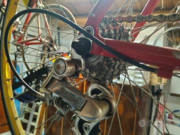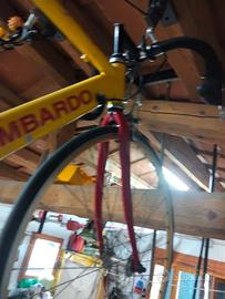 La bicicletta da corsa, anni 2000 circa, di marca Lombardo è un 26". Ha il cambio Campagnolo, come da foto è in generale tenuta bene anche se presenta dei distacchi della vernice in alcuni punti.