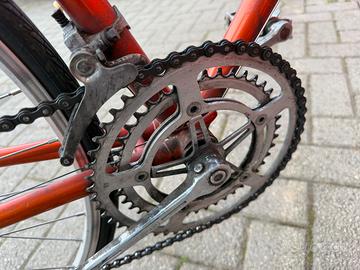 • Stato: La bici è integra ma presenta segni del tempo e della polvere. Il telaio ha alcuni graffi e punti di ruggine superficiale che non ne compromettono l'integrità ma che meritano un restauro conservativo per tornare agli antichi splendori.