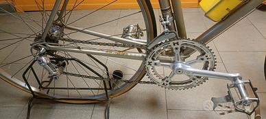 Telaio misura 52 Verniciatura come foto Champagne, Forcellini Campagnolo modificati, Scatola movimento centrale personalizzato Masi, Gruppo cambio Campagnolo nuovo record, Regisella Campagnolo pantografato Masi, Guarnitura Campagnolo con corona fresate Masi, Manubrio personalizzato Masi, Sella Cinelli, Freni Nuovi Campagnolo, cerchi MArtano su Mossi Campagnolo Record.