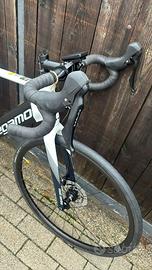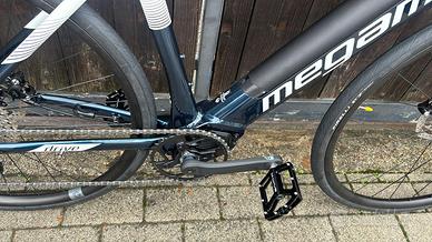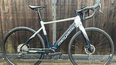 Bici in pronta consegna MEGAMO DRIVE in taglia M colorazione bianca/blu: montaggio come da catalogo, motore centrale 250W e ben 65nm con batteria integrata da 504Wh. Telaio in allumnio con cavi integrati e forcella in carbonio. Trasmissione Shimano GRX 1x11, freni idraulici, monocorona anteriore da 38 e cassetta pignoni posteriore 11/42. Monta gomme da 28 e può arriva ad un massimo di 34mm. Cerchi in allumnio TLR. Per maggiori info e foto contattaci