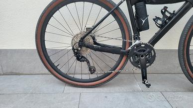 Vendo bici gravel Megamo Jakar del 2021 taglia "M" La bici si presenta in buone condizioni con normali segni di usura. -Cambio: shimano GRX 400 2x10 -Copertoni: pirelli gravel cinturato 700x44 circa metà vita -inserti antiforatura Vittoria air-liner gravel -pedali Shimano SPD -borsa da telaio impermeabile con fibbie da 3.5 litri impermeabile -doppio portaborraccia -4 spessori manubrio
