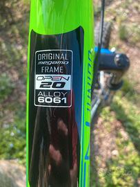 Megamo Open Junior S è una bici da bimbo con ruote da 20", telaio alluminio forcella ammortizzata (doppio ammortizzatore anteriore) e cambio 6 velocità.