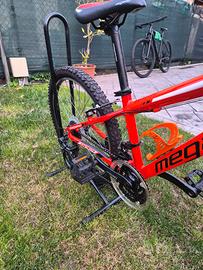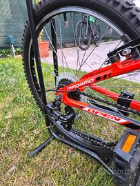 Bici Megamo Open 24 con qualche segno per l'utilizzo ma sempre tenuta con cura. La bici monta i seguenti componenti: -Freni Shimano a pattino -Cambio Shimano Tourney con 3 marcie all'anteriore e 7 al posteriore -Forcella Open Evo Insieme cedo il cavalletto,campanello e bortaborraccia. Non spedisco.