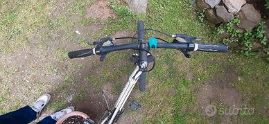 Bici colore bianco, rosso,nero. Modello Bikevolution, vendo per inutilizzo, danneggiata nel sellino e manopole esterne. Bici con marce 3 (a sinistra)+ 6(destra) funzionanti, catena buona, ruote tassellate ottime. età dai 10 anni in poi (sellino regolabile)