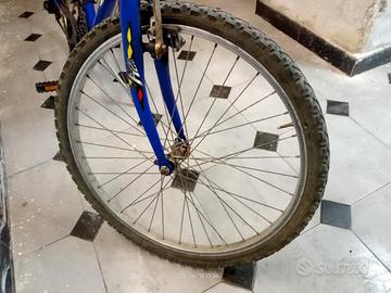 si vende bici montain bike da 24 pollici, perfettamente funzionante,con marce. È visibile il manubrio arrugginito.