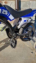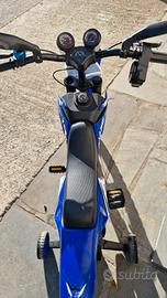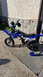 Bici con ruote da 12" simil moto da cross Yamaha con le carene nella colorazione Blu e Bianco e sellino come una sella da moto