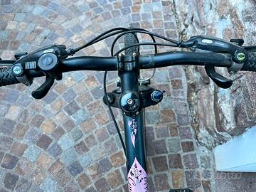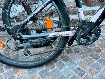 Scott contessa 40 da ragazza con ruote da 26 forcella regolabile, cambio shimano 8 dietro 3 avanti. Tenuta molto bene, il cambio funziona perfettamente. Usata davvero pochissimo.