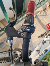 Mountain bike per bambino/a (9-12 anni), colore bianco. 6 cambi, telaio in acciaio, diametro ruote 24 pollici. Sella ergonomica e manopole antiscivolo, luce anteriore/posteriore, campanello. Usata ma in buone condizioni.