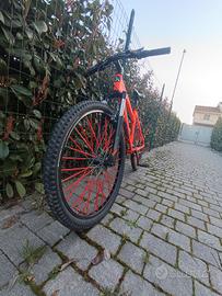 la bici ha un cambio posteriore di 7 marce e quello anteriore con 3 marce. Ho aggiunto dei copriraggi rossi e un porta borracce
