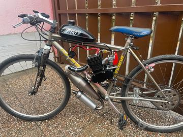 Bici Mountain bike titanio con un anno di vita con applicazione motore a scoppio NUOVO da rodaggio. Ottima per divertimento fuori strada
