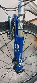 Mountain bike Lee Cougan. Telaio 26". Forcella Rock Shox. Cerchi Mavic. Cambio Shimano Xtr. La forcella va riparata, è scesa e non sale più (forse basta ricaricarla con l'appositapompetta). MTB 26 pollici bicicletta