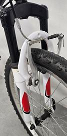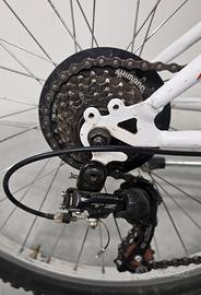Splendida bici 24’’ mountain bike ideale per ragazzi da 9 a 12 di età Telaio in acciaio ammortizzato Forcella ammortizzata Freni/Leve in alluminio Cambio Shimano 18 vel. Cerchi e mozzi in alluminio, perfetta per chi ha un'altezza non oltre i 150 cm. Bicicletta da ragazzo dotata di fanale a batteria posteriore. Ottima per una passeggiata all'aria aperta. Cambio bici per crescita di mio figlio: la bici è in ottimo stato di conservazione e pronta per essere subito usata. La bici è pulita, le ruote sono gonfie ed il cambio è fluido. Caratteristiche Tecniche: - Cerchi in alluminio - Gomme gonfiabili - Freno anteriore e posteriore - Fanale a batteria anteriore e posteriore - Ruota: 24" x 1,75 - Altezza sellino regolabile - Sella morbida - Cambio: Shimano 6 rapporti x 3 corone - Manubrio alluminio/acciaio - Cavalletto in alluminio