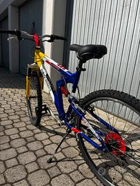 Bicicletta Mountain Bike da ragazzo/adulto, usata ma tenuta in buone condizioni, in quanto nel 2023 gli sono stati sostituiti diversi pezzi in quanto non utilizzata da tempo. Più precisamente la bicicletta ha subito nel 2023: SOSTITUZIONE PASTIGLIE + REGOLAZIONE FRENI SOSTITUZIONE CATENA + REGOLAZIONE CAMBIO SOSTITUZIONE CAMERE D'ARIA + COPERTONI + SELLINO Da quel momento la bicicletta non è mai stata usata.