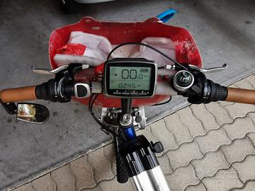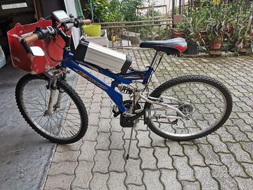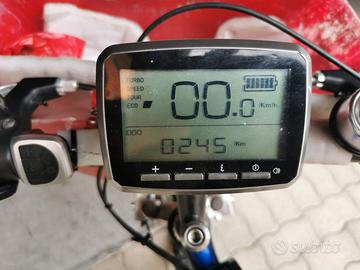 usata poco da mio figlio, ideale per ragazzo da 10 a 13 anni, comunque motorizzata con motore a sforzo, quindi a norme italiane, da 250W, batteria praticamente nuova, non ha l'acceleratore manuale ch'è fuori norma, comunque 5 livelli di potenza, facilmente sbloccabile oltre i 25 km/h, vendo vista, provata e piaciuta, ritiro a casa non spedisco.