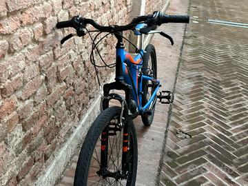 Bici mtb biammortizzata ragazzi telaio da 24! Sellino appena un po’ sgualcito ma tenuta bene!!! Camere d’aria antiforo!!! Eventuale spedizione al costo previo accordo
