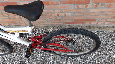Vendesi mountain bike biammortizzata, ruote da 24 pollici. Cambio a 3 velocità davanti e 6 dietro. Pneumatici, camere d'aria, manopole e pedali tutto nuovo. Ottimo stato. Possibilità di consegna in zona BO o FE previo accordi o spedizione a 25 euro.