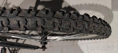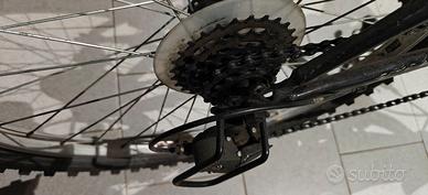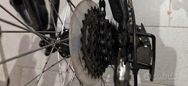 Vendo bicicletta da ragazzo/ragazza da 24 pollici, modello tipo MTB, colore nero/verde, completa di: cambio posteriore tripla corona anteriore forcella ammortizzata cavalletto freni funzionanti La bici è usata e presenta normali segni di utilizzo, come visibile in foto. Gomme tassellate, ideale per ragazzi per uso in paese, ciclabili, sterrato leggero e tempo libero. Da segnalare che la trasmissione mostra un po’ di ossidazione superficiale e può essere utile una normale messa a punto / ingrassaggio prima dell’uso intenso.