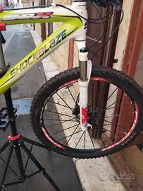 Vendo bici shockblze in carbonio da 26” La bici monta un cambio shimano XT,doppio cambio anteriore e forcella rockshox. La vendo a €600. X info 3403925174