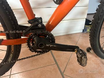 Vendo causa inutilizzo MTB 26” telsi Alluminio con forcella rigida in carbonio, cambio shimano XT a 9 velocita corona anteriore monocorona 32 denti. Ruote Mavic a 24 raggi anteriore e posteriore con freni a disco idraulici shimano. La bici è stata usata saltuariamente dai miei figli x fare qualche gara quando militavano nella cat. Giovanissimi. (Ora juniores e Allievo). Bici usata ma ben tenuta, leggera adatta x cat. G3/G4 x chi vuole provare a entrare nel mondo MTB senza spendere grandi cifre. Precedenza a consegna a mano, (ovviamente x provincia e regioni confinanti) in caso di spedizione spese a carico dell’acquirente