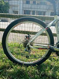 Bici mtb messa in buone condizioni,pronta all'uso,nessun difetto.La bici ha cambio Shimano a 9 rapporti nel rocchetto posteriore è nel rocchetto anteriore 3 marce,ruote nuove cerchi nuovi è perfetti ,freno a disco meccanico Shimano XT anteriore con disco da 180mm è pastiglie da rodare , è freno posteriore Shimano XT con disco da 160mm è pastiglie nuove. Ammortizzatore funzionante regolabile ,manubrio Olimpia in carbonio. SOLO PER VERI INTERESSATI SCRIVETE.
