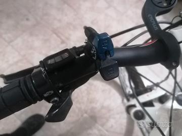 MTB 26 XL (fino a 180cm di altezza va benissimo)...copertoni e camere d'aria nuovi (1 uscita) cambio Shimano deore alivio 27 velocità, contachilometri multifunzione come in foto, doppio supporto borraccia, supporto garmin, sella smp, blocco/sblocco forcella per ottimizzare l'uso su strada o sterrato, manopole nuove, appendici corna di bue nuove, telaio in alluminio molto leggera....cambio a 4 leve (due per parte) da regolare e rivedere ma funzionante, ....vendo visto piaciuto.