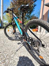 Vendo Mountain Bike Adriatica Wing RCK con ruote da 27.5” taglia S. La bici è stata usata pochissimo, come nuova, solo 2 piccoli graffi zona cavalletto quasi impercettibili. Bici versatile da usare su ciclabili, strada e sterrati leggeri. Caratteristiche tecniche principali: - Telaio in alluminio leggero e resistente - taglia S telaio da 38 - Ruote da 27.5” con pneumatici tassellati MTB come nuovi, adatti a terreni misti (asfalto, sterrato, ghiaia) - Cambio Shimano a 21 velocità (3x7) - Deragliatore Shimano - Freni a disco meccanici anteriori e posteriori - Forcella ammortizzata anteriore con possibilità di bloccarla solo consegna a mano zona Modena. resto a disposizione per ulteriori informazioni.