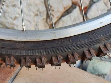 Usata pochissimo, ruote del 26 con pneumatici tassellati perfetti, portapacchi posteriore per zaino o borsa palestra , cambio Shimano 3x7 , freni Vbrake, taglia è unica.