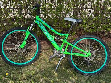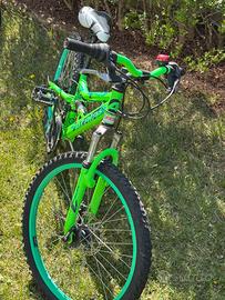 La bici è in ottime condizioni generali, usata ma ben tenuta, sempre custodita con cura. Esteticamente molto bella e sportiva, colore verde fluo molto visibile. 🔧 Caratteristiche principali: •Ruote da 24 pollici •Cambio Shimano (multivelocità) •Freni a disco anteriori e posteriori •Doppia ammortizzazione (forcella anteriore + ammortizzatore centrale) •Cavalletto installato •Copertoni in buono stato •Sella regolabile 🚴♂️ Perfetta per utilizzo su strada, ciclabili e sterrati leggeri. 📍 Condizioni: La bici è pronta all’uso, non necessita interventi. Normali segni di utilizzo ma nulla che comprometta funzionalità o estetica. ⸻ 💰 Prezzo 150€ leggermente trattabili ⸻ 📍 Consegna •Ritiro a mano a Sondrio •Non spedisco ⸻ ⚠️ Note importanti •Vendita tra privati, formula “vista e piaciuta” •Non si accettano resi o contestazioni post vendita •Pagamento in contanti al ritiro •No perditempo