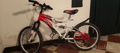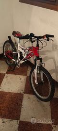 Bicicletta MTB bambino ruote da 20" con cambio a manopola a 6 rapporti, forcella anteriore ammortizzata e ammortizzatore posteriore, in ottime condizioni tutto funzionante.