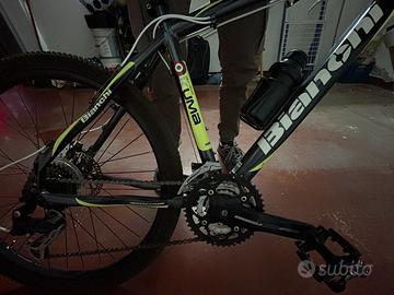 Vendo MTB Bianchi Kuma causa inutilizzo. La bicicletta è sostanzialmente come nuova, tranne qualche graffio. Ruote da 26 pollici, freni a disco, cambio Shimano Acera 3x9.