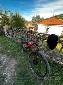 vendo bici ktm in carobonio cerchio dietro in carbonio 26.5 cerchio anteriore 27.5 in carbonio forcelle fox posteriori e anteriori pedali flat dell’ht in alluminio cambio xtr freni shimano xtr sedile telescopico per altre informazioni scrivetemi