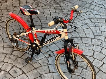 Bici BOTTECCHIA BOSS 470 con ruote da 20” pollici junior per bambino 6-9 anni circa, MTB taglia 28, Shimano 6v, mod. HT 470 - HC9 racing - hard tail 20 - sloping frame - bicicletta front suspended - accessoriata con parafanghi, cavalletto, porta borraccia e regolazione sella con morsetto a sgancio rapido.