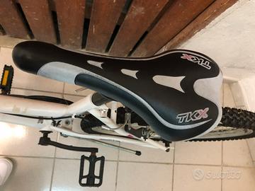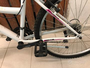 Bicicletta bianca con adesivi rosa MTB denver bike
