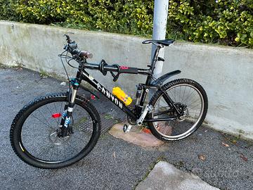 Splendida bici mtb Canyon taglia M -L ideale per donna o uomo altezza 168-180 con telaio in alluminio. Recisinata a dicembre 2025 e perfettamente funzionante, monta gomme all terrain huthcinson 26x2.25 dietro e 27,5 2,25 avanti . trasmissione 3x9v e pignone 12 – 40 post. guarnitura shimano XTR 22-32-46 . Freni disco idraulici Shimano sostituiti a gennaio 2026, manubrio e Reggisella in carbonio, manicotti in cuoio ad alta presa. molto performante in tutte le condizioni, in discesa off da il meglio, stabile e divertente, sul sasso smosso e’ una goduria. Sospensioni fox ad aria e olio, interamente regolabili, da poco revisionate. sistema al posteriore four link suspension, per un’ottima stabilita in tutte le condizini, le caratteristiche e tutti in dettagli potete vederli dal sito . Monta pedali antiscivolo in alluminio e acciaio ibridi. Anno 2013.