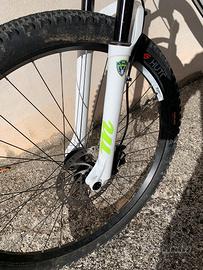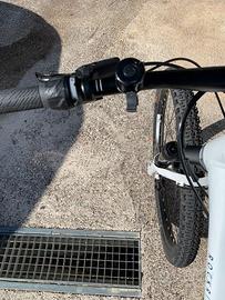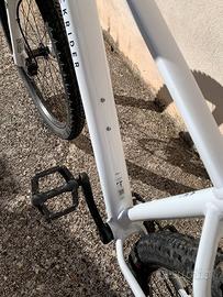 Splendida bici Mtb cross country RACE 700 telaio in alluminio colore bianco, data di acquisto 09/03/2025 ancora in garanzia fino al 09/03/2027, acquisto fatto presso la declaton La bici è stata usata un massimo di 5 volte e tutte su strade urbane, mai in sterrato o altro. dimensioni: S:L - 175-184cm Telaio Alluminio 6061 e 6013, tubi a spessore variabile (triple butted). 1610 grammi la taglia M (grezza e senza forcellino del deragliatore). Reggisella 31,6 mm. Movimento centrale PressFit 92. Forellino del deragliatore Sram UDH. Trasmissione: Deragliatore posteriore Shimano Deore M5000. Leva Shimano Deore M5100. Guarnitura Shimano Deore M5100 (170 mm taglie S e M e 175 mm taglie L e XL). Corona da 32 (compatibile 30, 34 e 36 denti). Cassetta Shimano Deore M5100 11-52. Catena Shimano HG601. Movimento centrale Sram PF 92. Forcella: Manitou Markhor 100 mm. Steli: 30 mm, alluminio serie 6000. Foderi: arco invertito. Misura ruote 29". Tecnologia cartuccia ad aria: TS Air. Ammortizzatore di compressione: Kwik Toggle, regolabile 2 posizioni (Open, Lock). Ammortizzatore di ritorno: TPC, regolabile. | **Dettaglio** | **Specifiche** | |----------------|----------------| | Livello di pratica | Principiante, intermedio | | Intensità | Media intensità | | Numero di velocità | 11 velocità | | Tipo di telaio | Telaio in alluminio | | Taglia della ruota | 29" | | Carico massimo | 100 Kg | | Tipo di freni | Freni a disco idraulici | | Diametro del manubrio | 31,8 mm | | Numero di portabottiglie | 2 | | Compatibilità canotto sella | Compatibile con canotto sella telescopico | | Attacco per borsa | Senza attacco per borsa | | Tipo di canotto sella | Rigido | | Corsa sospensione anteriore | 100 mm | | Ampiezza manubrio | 720 mm | | Sospensione | Semirigida | | composizione | 100.0% alluminio | | Peso (in kg) | 12,4 kg | spedizione ASSICURATA con corriere di fiducia per evitare qualsiasi problema durante il trasporto.