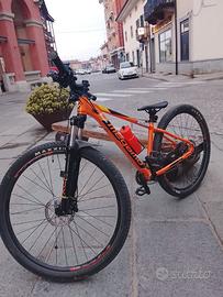 Vendo megamo natura 29 pollici freni shimano davanti disco 160 ,dietro 180 cambiato da un mesetto,manopole arancioni con vite per più grip,ammortizzatore xct , copertoni cambiati da 2 settimane, sempre tenuta con la massima cura,affidabile sia nei boschi che in città,cambio dietro nove velocità,davanti due velocità,catena con maglia apribile ,della molto comoda,perfetta per le salita per il suo leggero peso,vendo per passare a un livello maggiore Prezzo di listino 720 Prezzo usata 650