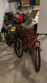Vendo due Mtb 27.5 da sistemare. Le vendo insieme a 100€. Alla bici Momo Design (bici nera con telaio in alluminio) bisogna mettere dei nuovi cavi freno e aggiungere un nuovo cuscinetto per la forcella. Per il resto è completamente funzionante. La bici arancione invece necessita di collegamento cavi freno e cavi cambio. La bici arancione ha il telaio in acciaio e bisogna registrare il cambio. Le vendo per far spazio nel box. Le bici si trovano a Cerignola (FG)